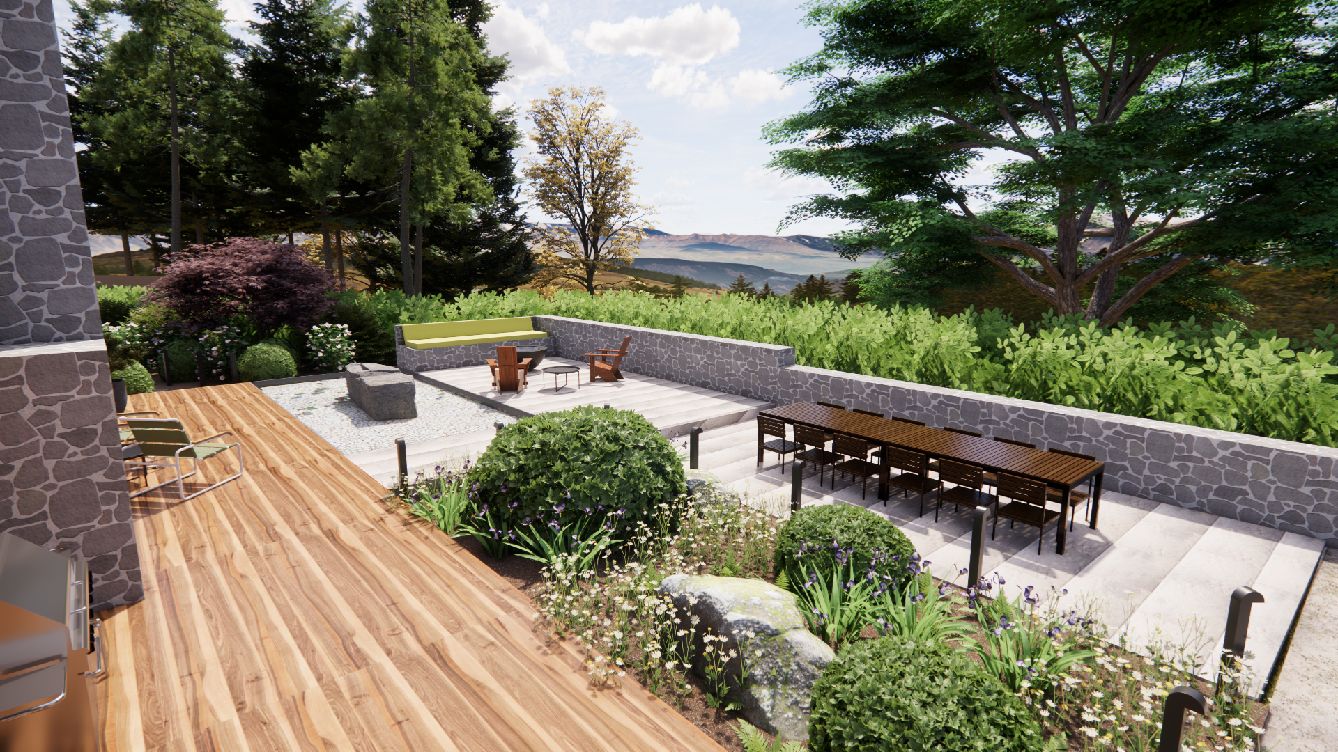 The inclusion of native gardens further strengthens the bond between the space and its surroundings, celebrating the local ecosystem while promoting sustainability. These low-maintenance plantings not only enhance biodiversity but also provide seasonal interest, ensuring year-round beauty. Soft, ambient lighting delicately highlights key features, casting a warm and inviting glow that enhances the landscape’s elegance during the evening hours.